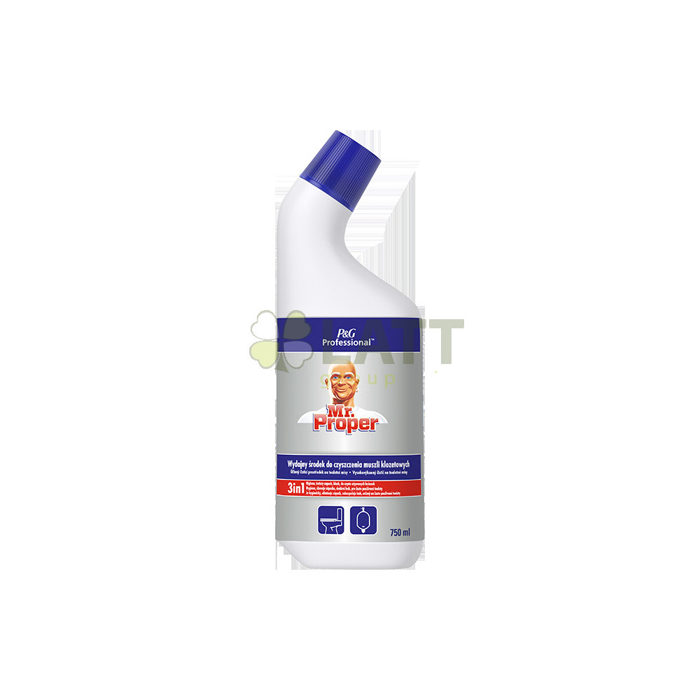 Profesionální tekutý prostředek Mr. Proper na hygienické čištění toalet a pisoárů k okamžitému použití. Odstraňuje vodní kámen, zanechává svěží vůni a hygienicky čistý povrch s dlouhotrvajícím leskem. Odstraňuje usazeniny, kaly a vodní kámen. Obsahuje účinný systém polymerů, který vytváří na povrchu neviditelnou fólii. Díky tomu vydrží povrch lesklý a hygienicky čistý mnohem déle. Kyselé pH napomáhá předcházet tvorbě vodního kamene. Pro pohodlnější aplikaci a přesnější dávkování má láhev tvar kachního krku.
