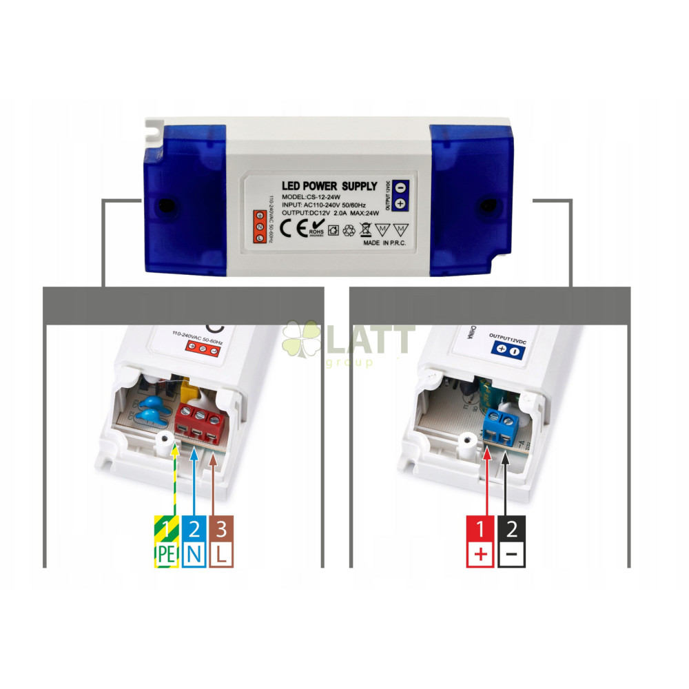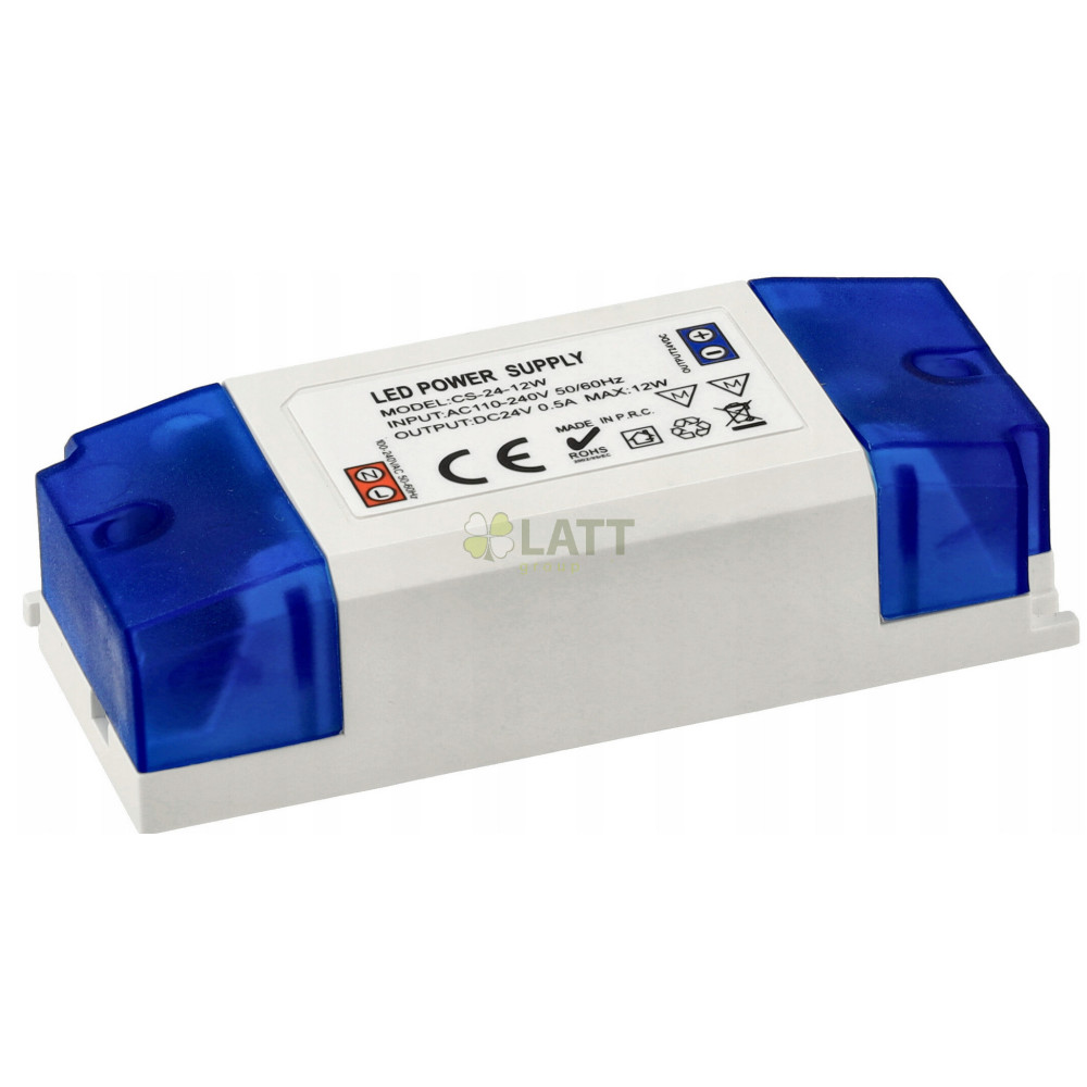 LED zdroj 24V 12W 0,5A – kompaktní transformátor pro LED pásky a další zařízení vyžadující napětí 24V. Ideální pro malé instalace v suchých prostorách, jako je nábytek nebo dekorativní osvětlení.