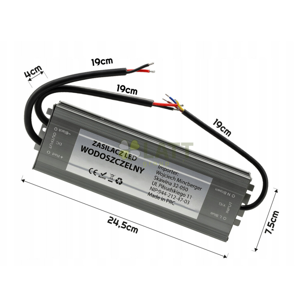 - Výstupní vodiče: 2 páry vodičů (plus a mínus) - připraveno k napájení dvou nezávislých LED pásků