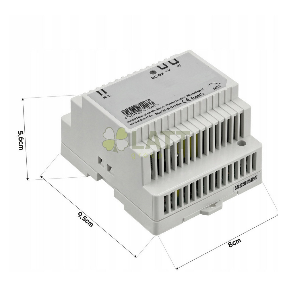 - Model: Spínaný zdroj 24V 60W 2,5A na DIN lištu
