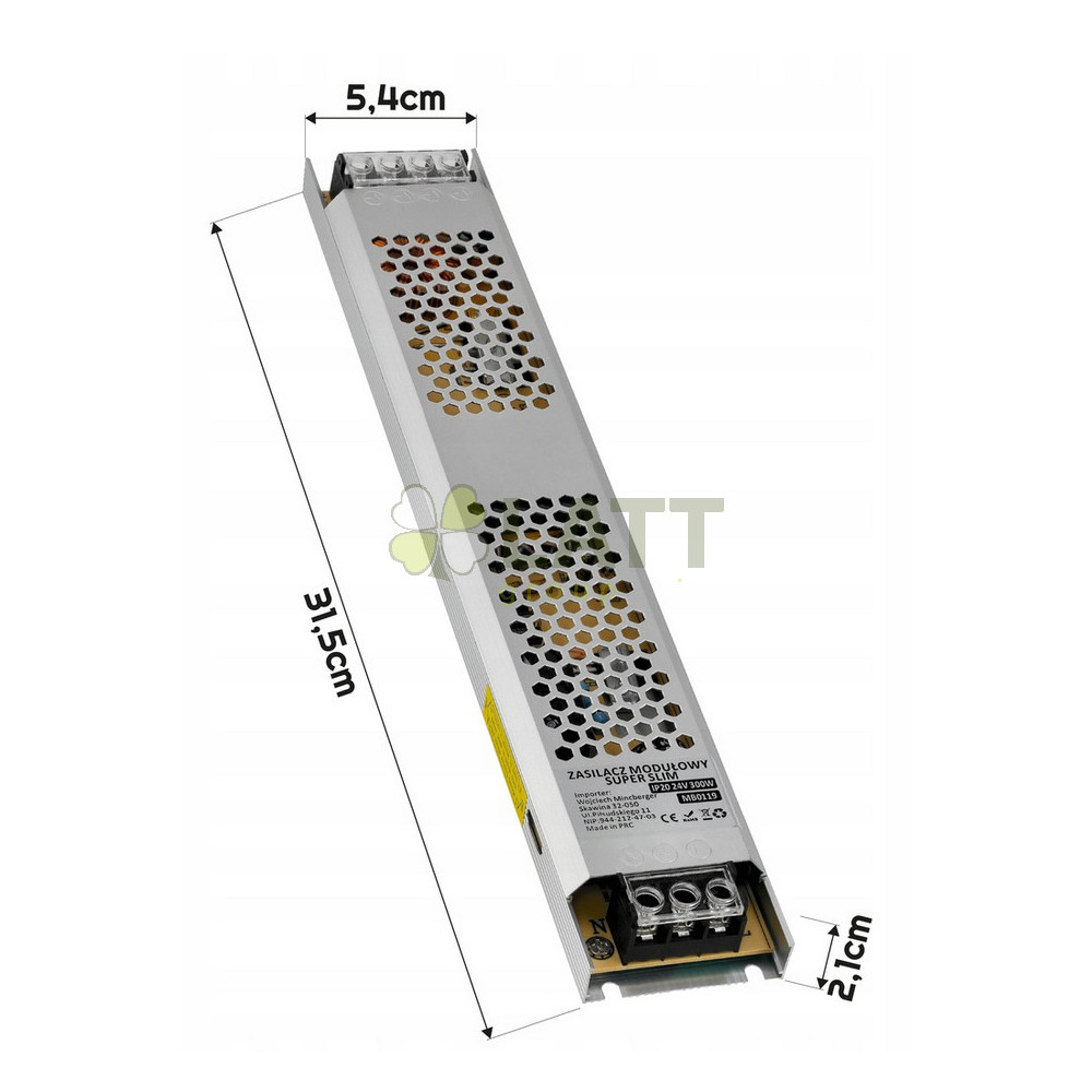 24V 300W 12,5A IP20 LED napájecí zdroj pro LED pásek montáž Slim Very Narrow je perfektním řešením pro středně velké LED instalace, poskytuje účinnost a spolehlivé napájení v minimální velikosti. Díky svému tenkému designu je ideální pro instalaci v místech s omezeným prostorem při zachování plného výkonu a stability.