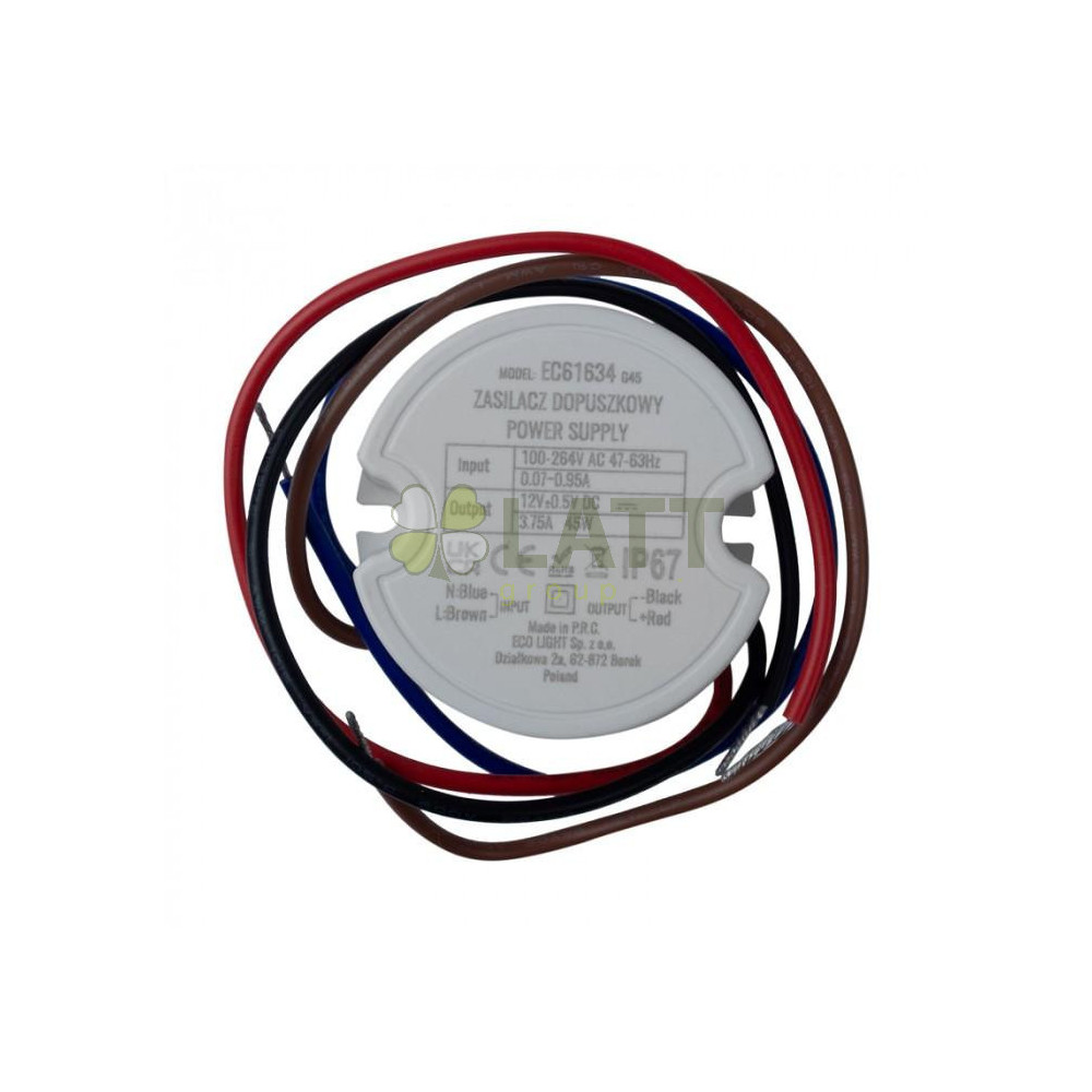 Napájecí zdroj pro LED 12V 45W IP67 pro krabici FI60 50x22 3,75A