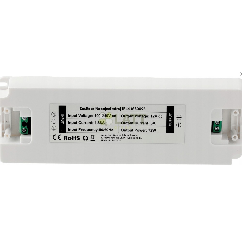 - Model: nábytkový LED zdroj 6A 72W IP44 12V