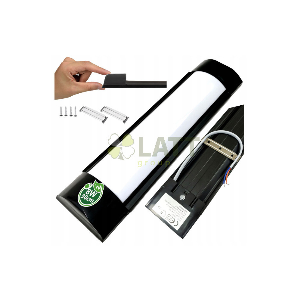 Model: Přisazené LED svítidlo, černé, 8W, 30cm