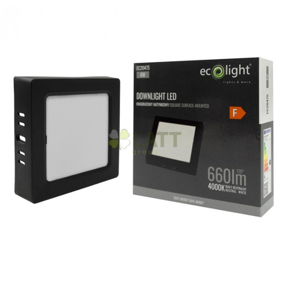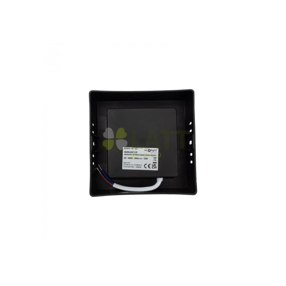 LED přisazený stropní panel – čtverec, 6 W, 660 lm, černý