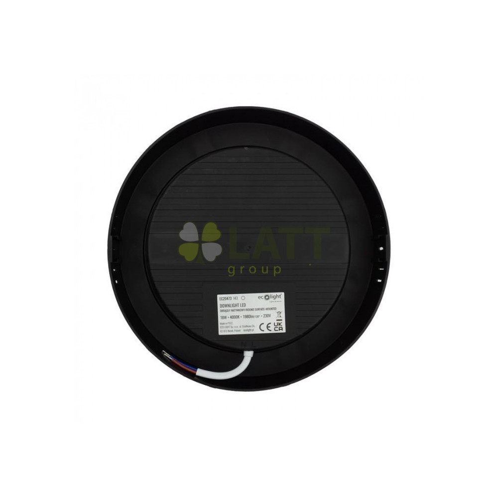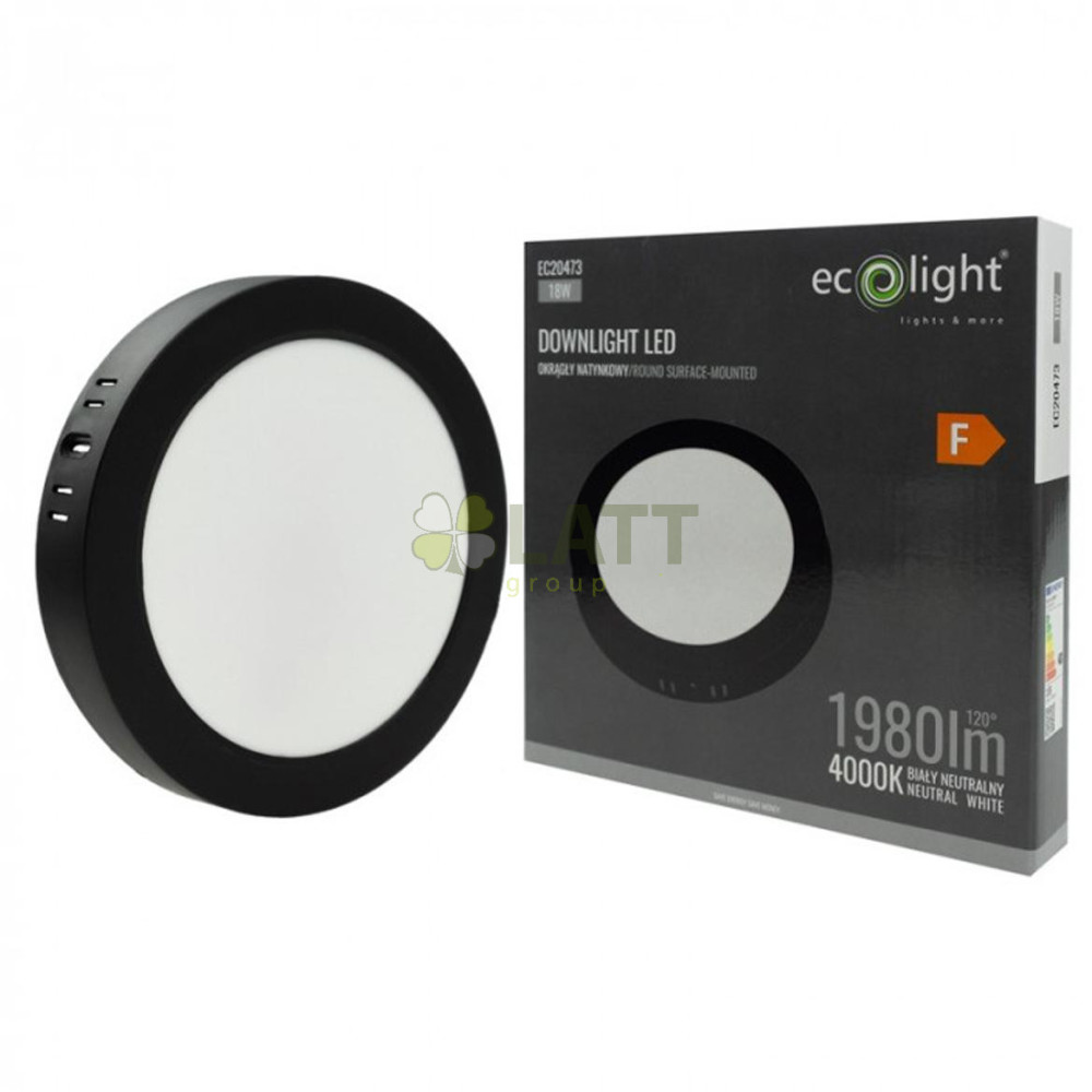 LED stropní svítidlo, přisazené, kulaté, 18W, 1980lm, černé, 4000K