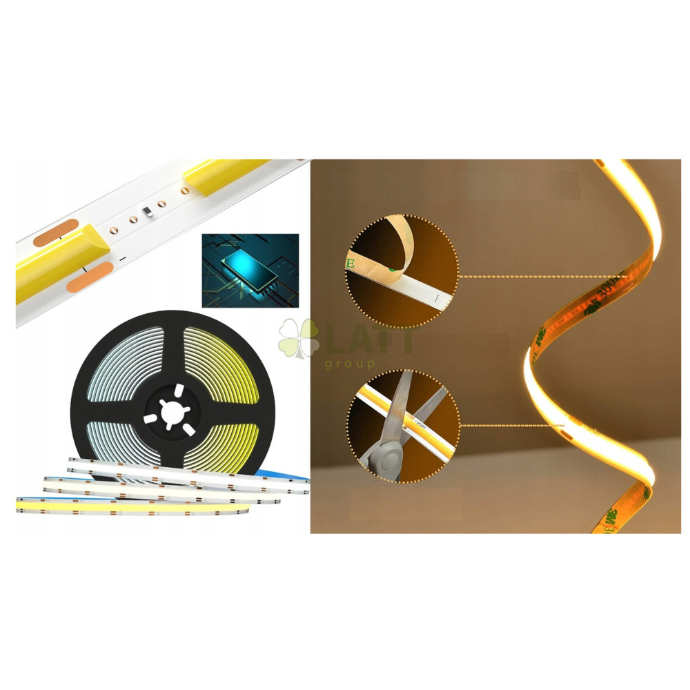 ✅ 24V COB LED pásek s výkonem 9W na metr je moderní a efektivní řešení osvětlení, které je ideální pro osvětlení nábytku, interiérů a dalších prostor.