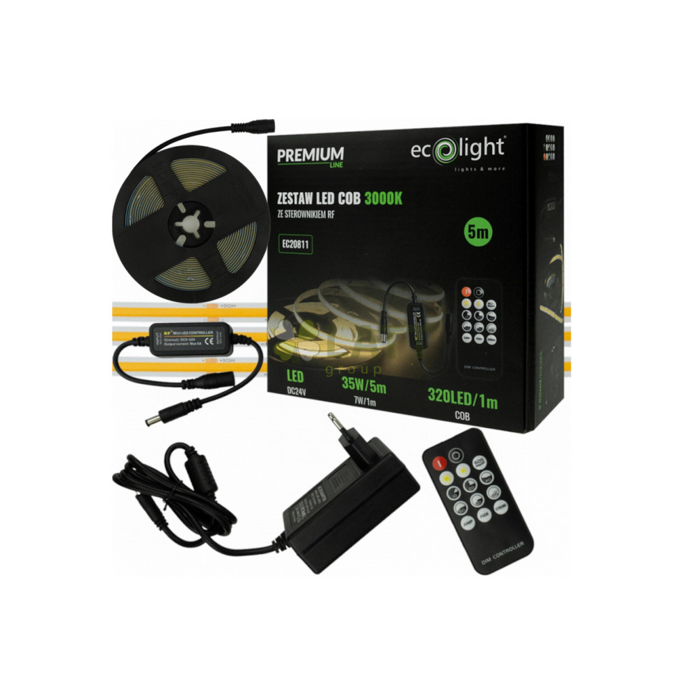 ECOLIGHT COB LED pásek 35W - 24V - 320 - 5M - 3000k - teplá bílá + dálkový ovladač