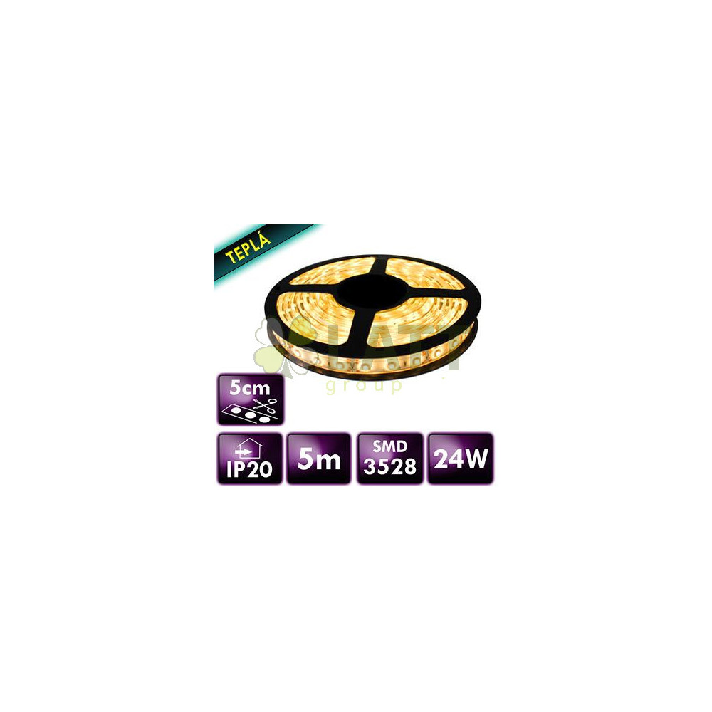 LED pásek 300 5 m 4,8W/m 24W/5 m 2835 IP20 12V teplá bílá + konektor