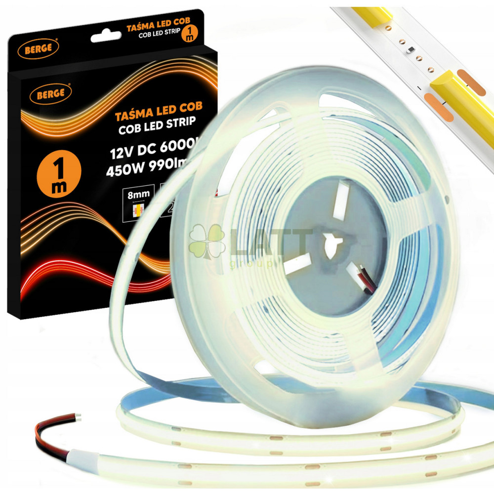 BERGE LED pásek COB Neon 12V - 480D - 9W/m - IP20 - 1m - 990lm - studená barva