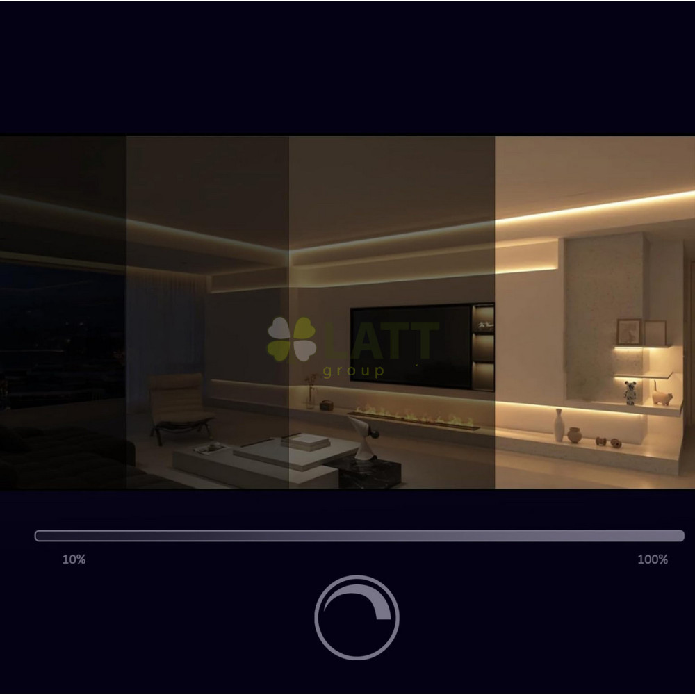 - Díky technologii stmívání umožňuje pásek plnou kontrolu nad intenzitou světla .