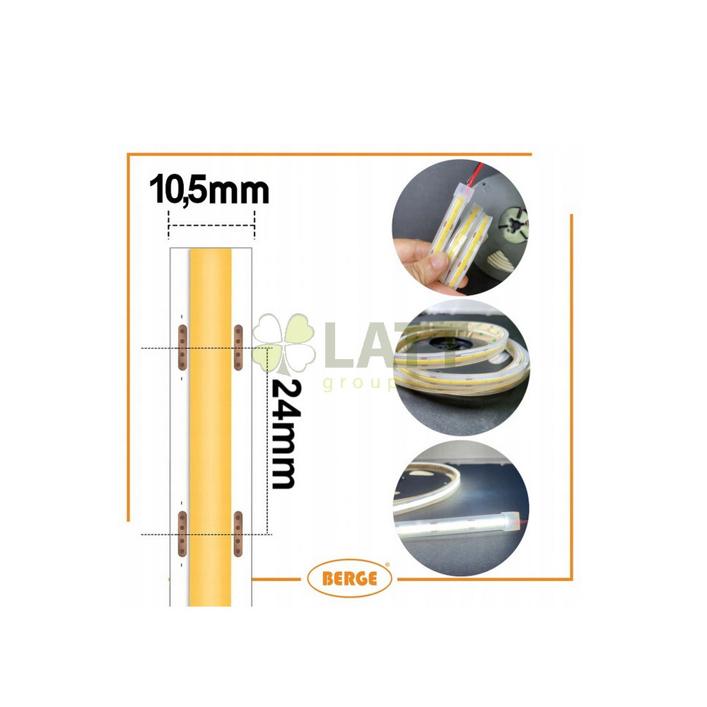 BERGE LED pásek COB Neon 12V - 480D - 9W/m - IP67 - 990lm - 5m - studená barva