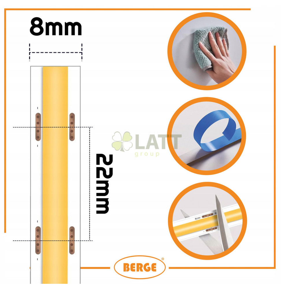 BERGE LED pásek COB Neon 24V - 480D - 9W/m - IP20 - 50m - 990lm - teplá barva