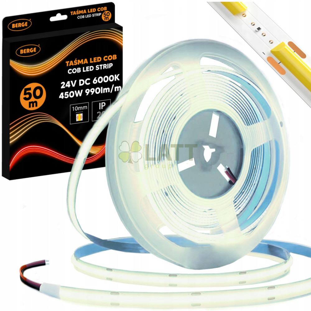 BERGE LED pásek COB Neon 24V - 480D - 9W/m - IP20 - 990lm - 50m - studená barva