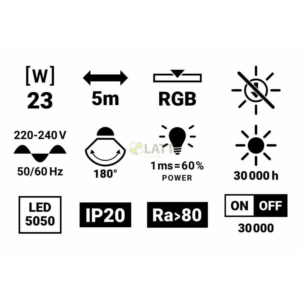 | Technické parametry: ✅ Model:RGB LED pásek ✅ Materiál:Bílá dvojitá deska plošných spojů s uspořádanými diodami ✅Napájecí napětí:12V stejnosměrného proudu ✅ Barva světla:RGB (široký barevný gamut) ✅ Počet diod:30 ks/m ✅ Výstupní výkon 1m:~4,6V ✅ Úhel paprsku:180° ✅ Třída těsnosti:IP20 (určeno pro vnitřní použití) ✅ Možnost sdílení:každých 2,5 cm, má samolepicí pásku ✅ Velikost:výška 1,6 mm / šířka 10 mm / délka 5 m | |