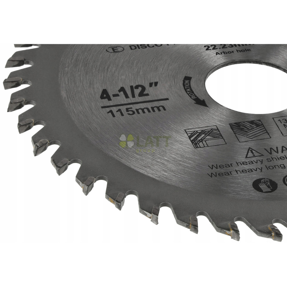 Použití a funkce: Materiál čepele: Čepel je vyrobena ze slinutého karbidu (TCT), který zajišťuje dlouhou životnost a odolnost vůči vysokému zatížení. Ideální pro řezání tvrdého dřeva, měkkého dřeva, exotického dřeva a abrazivního dřeva. Rychlé a přesné řezání: Díky 40 přesným zubům umožňuje kotouč rychlé a čisté řezy s minimálním odpadem materiálu. Optimalizovaný design zubů: Zuby jsou broušeny střídavě vlevo a vpravo, což zlepšuje efektivitu řezání a snižuje pracovní odpor, což umožňuje rychlé a hladké řezy. Všestrannost: Kotouč je vhodný pro většinu úhlových brusek a kotoučových pil. Ideální pro použití se stolními pilami, síťovými pilami a přenosnými pilami. Technické údaje: Velikost: 115mm (4,5") - ideální pro úhlové brusky Počet zubů: 40T pro přesné a rychlé řezání Materiál: Vysoce kvalitní legovaná ocel YG8 s čepelemi ze slinutého karbidu (TCT) Použití: Pro řezání tvrdých, měkkých, exotických a exotická dřeva abrazivní dřevo Tloušťka čepele: 0,042 palce Barva: Leštěný kovový povrch