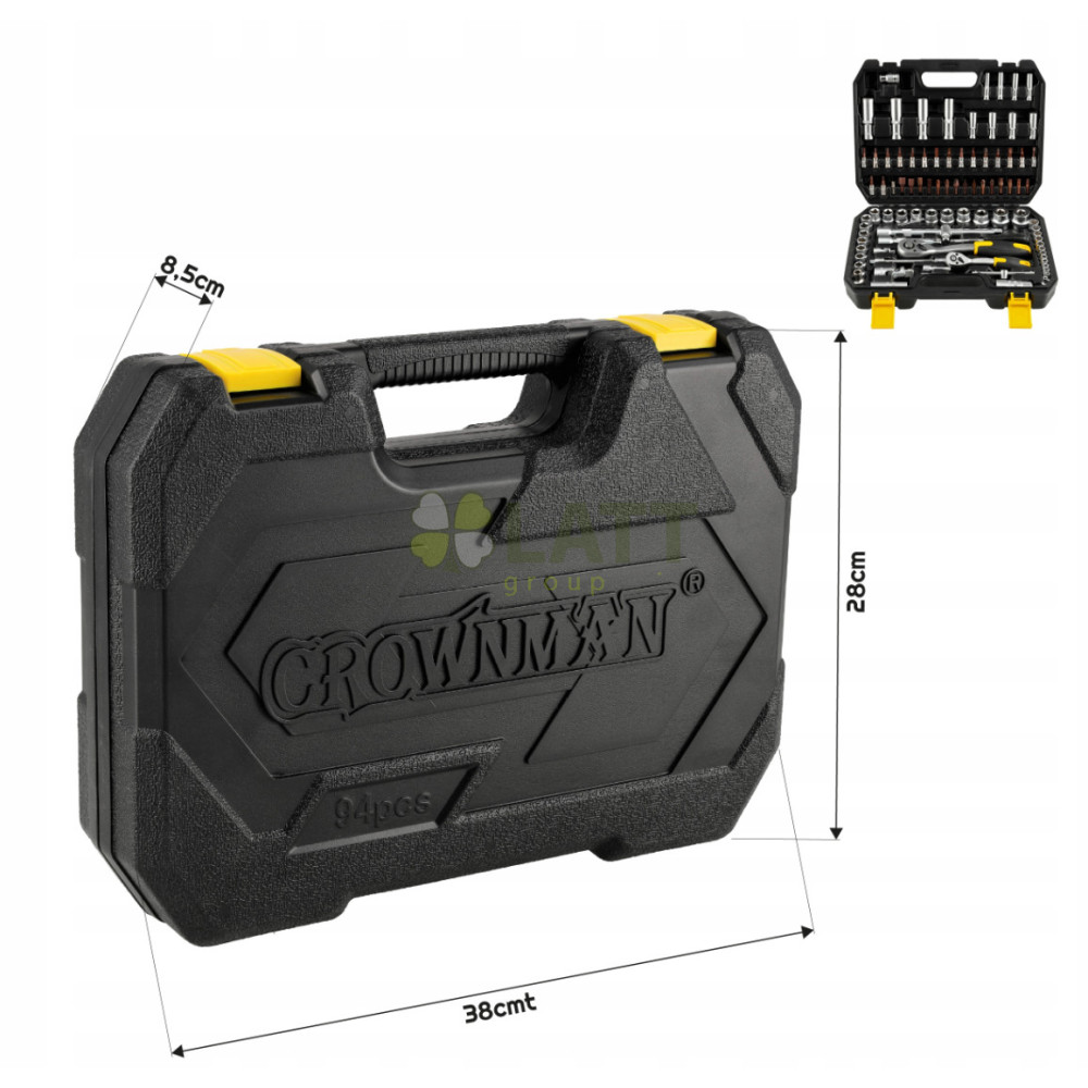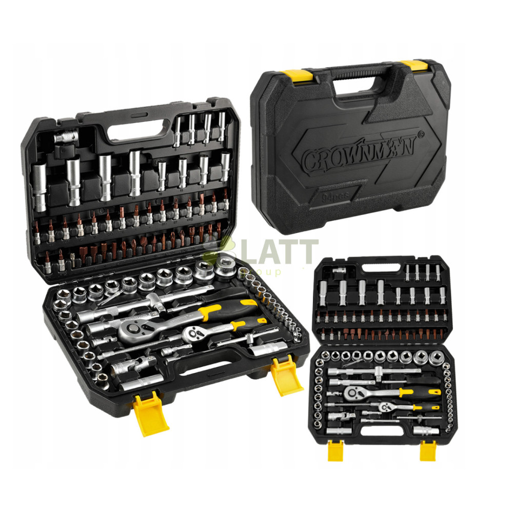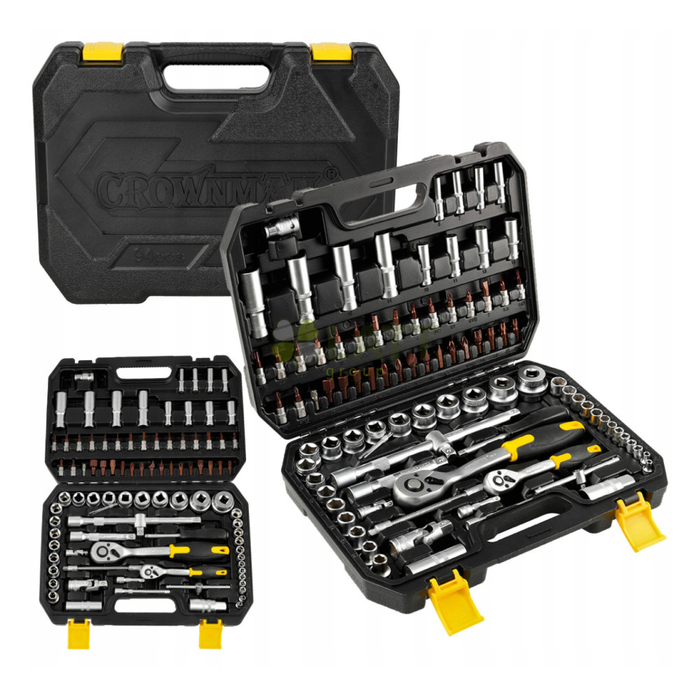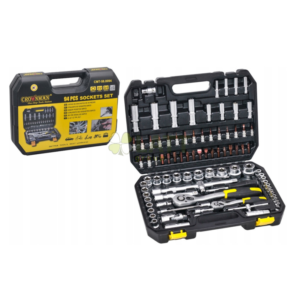 94dílná sada nářadí CROWNMAN je kompletní sada nástrčných klíčů, klíčů a bitů, které jsou nezbytné v dílně i doma.