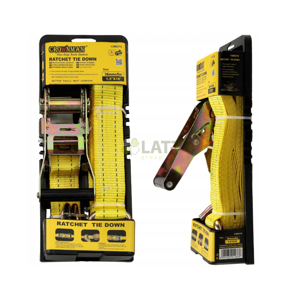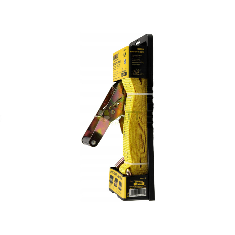 CROWNMAN Pás upínací ráčnový 5m s háky - 38mm