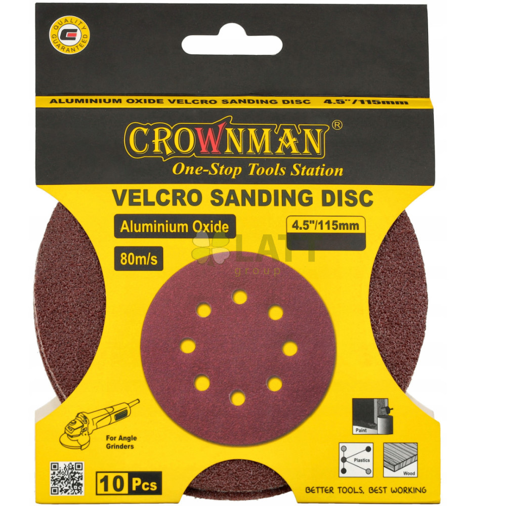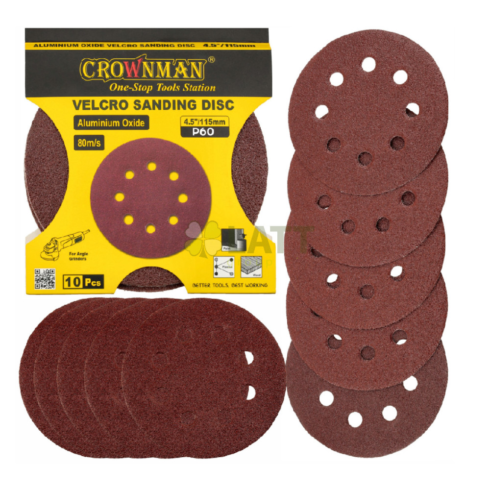 CROWNMAN Brusný papír na suchý zip kulatý 115 mm 4,5`` gradace P60 - 10 ks