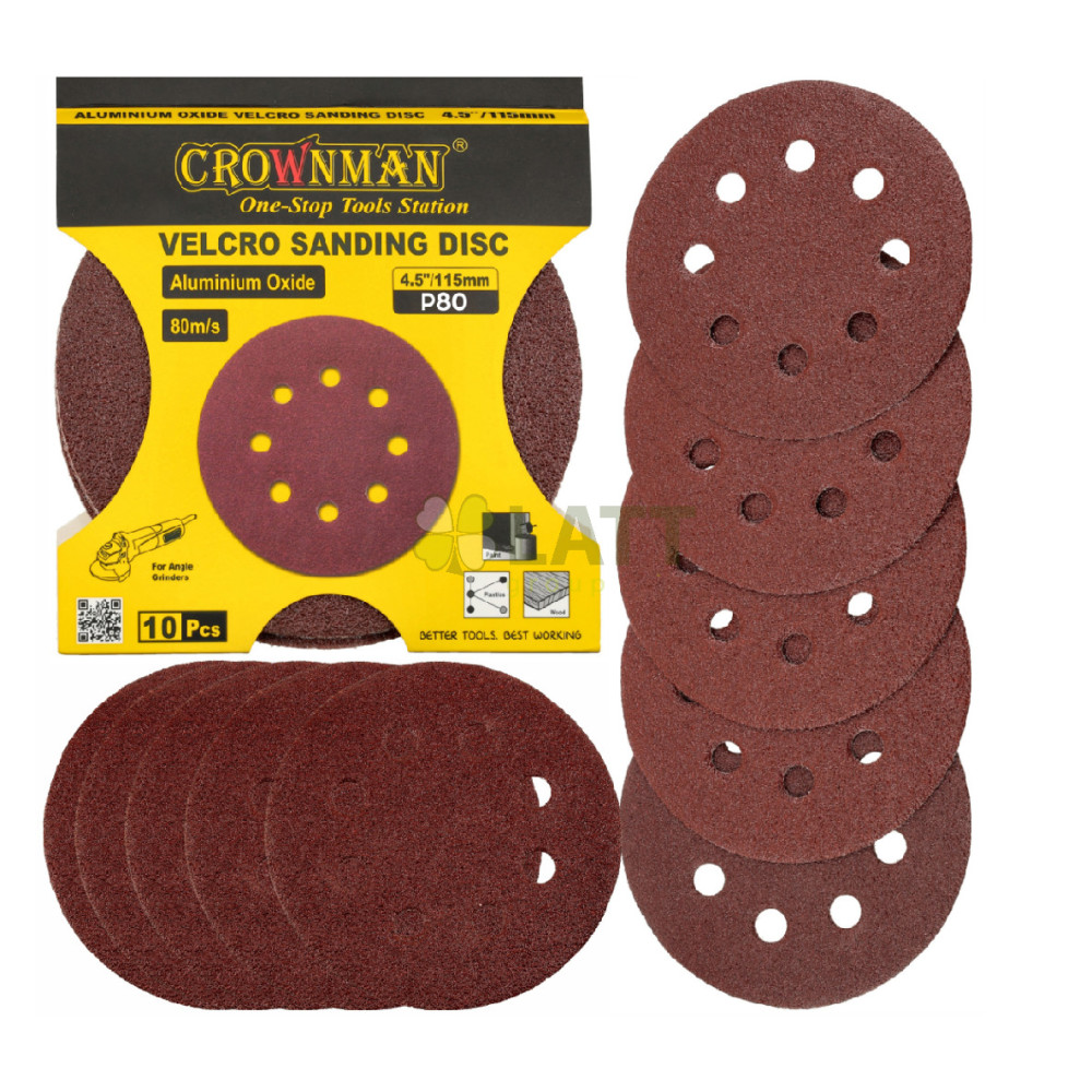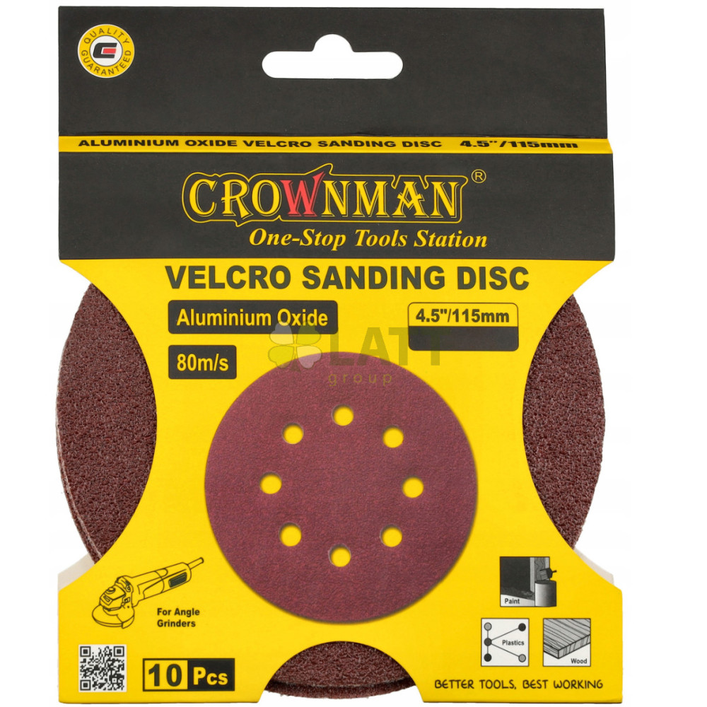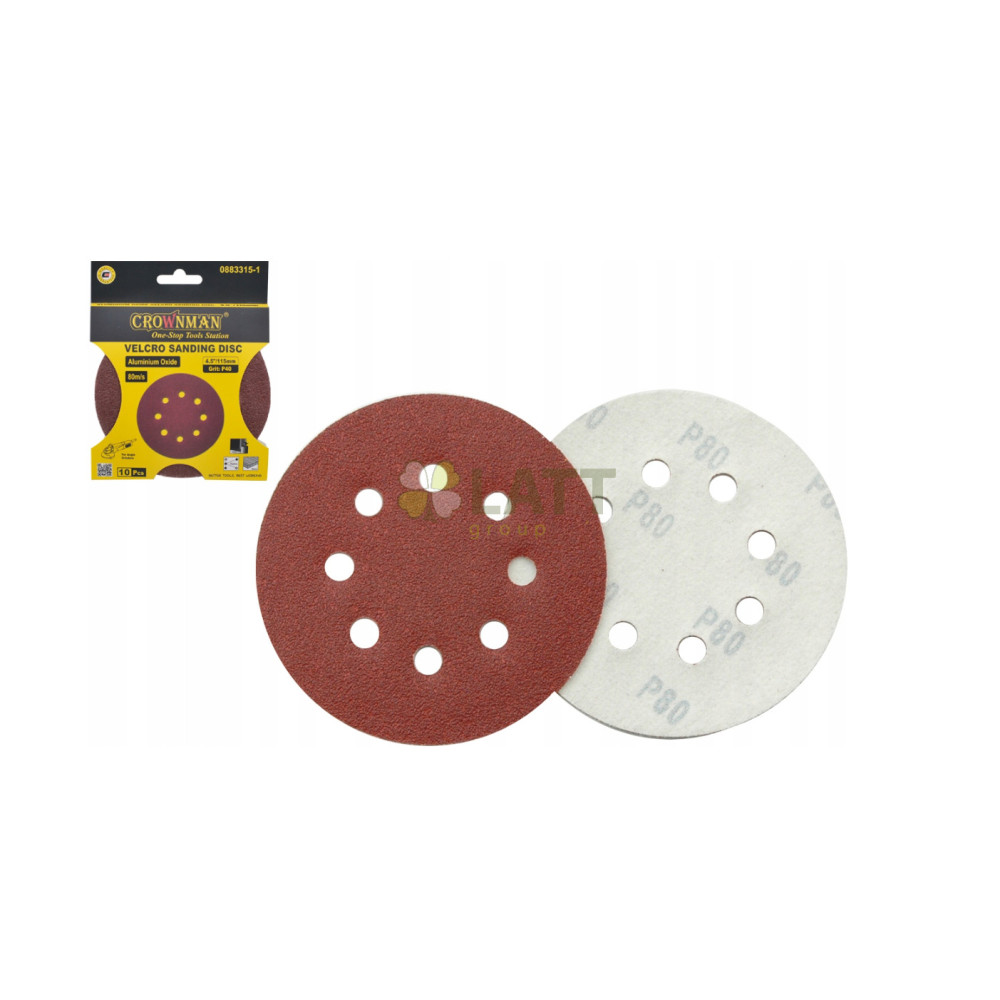 CROWNMAN Brusný papír na suchý zip kulatý 115 mm 4,5`` gradace P80 - 10 ks