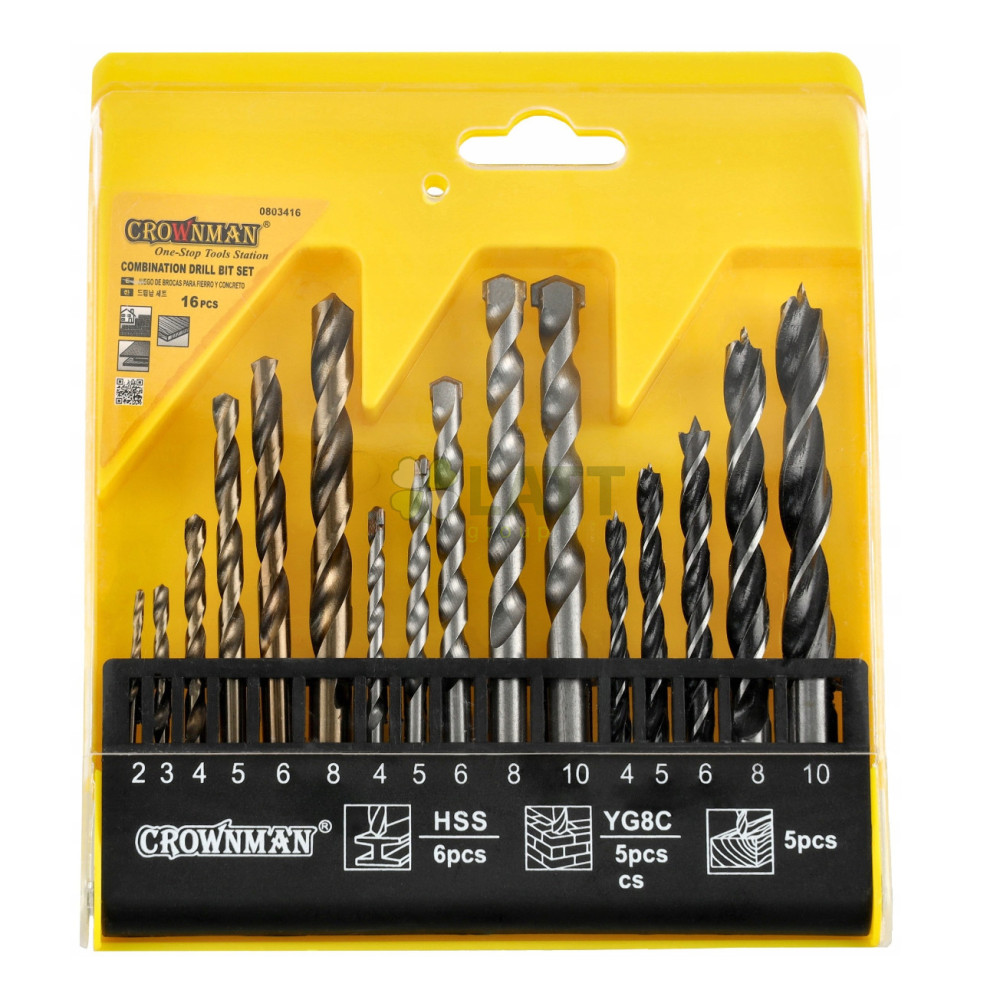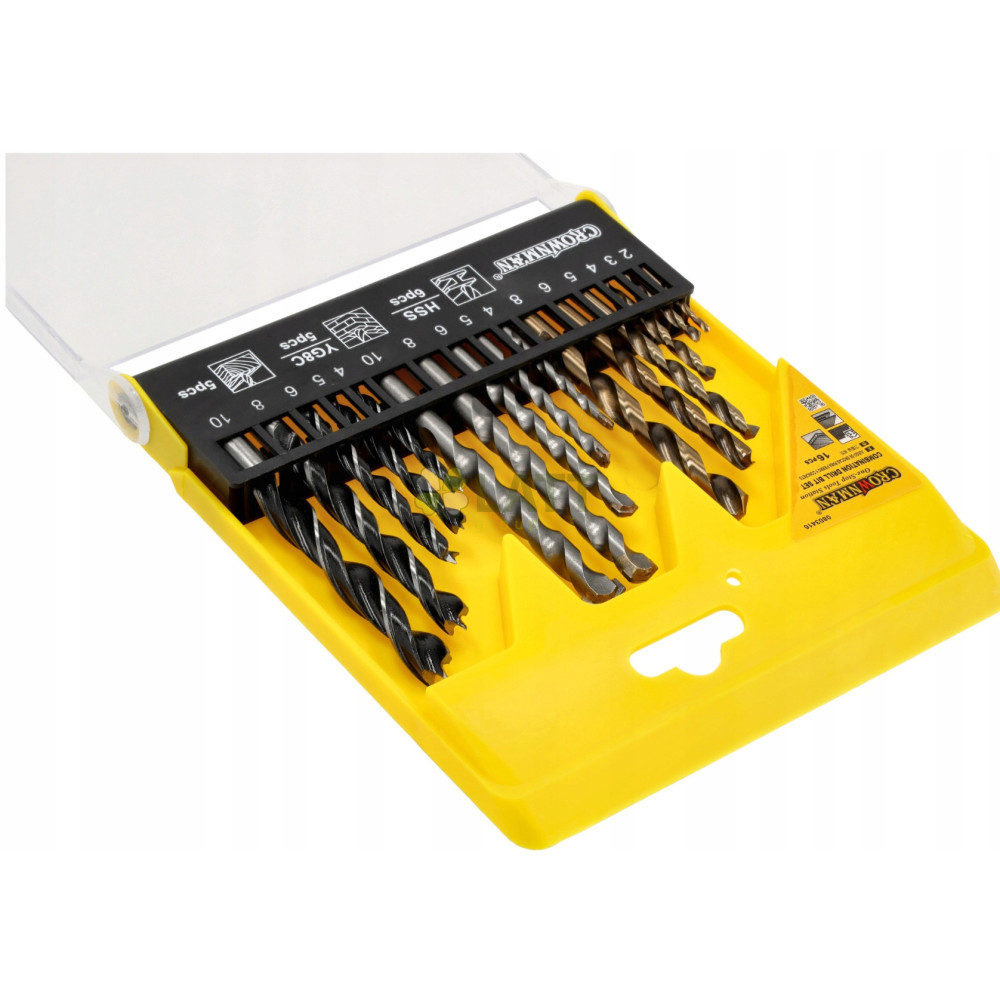 CROWNMAN Sada vrtáků do kovu, betonu, dřeva, 16 kusů, kompletní