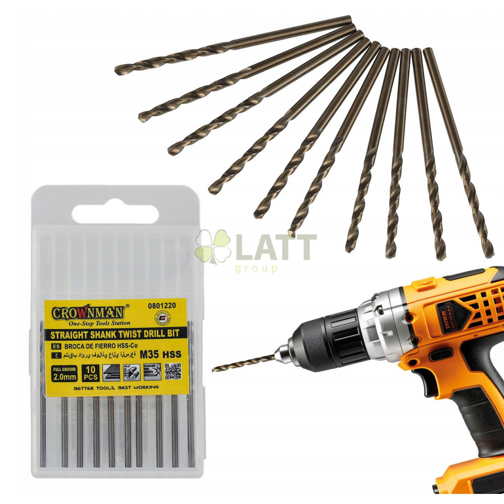 CROWNMAN Sada 10 ks kobaltových vrtáků M35 HSS 5% - 2mm