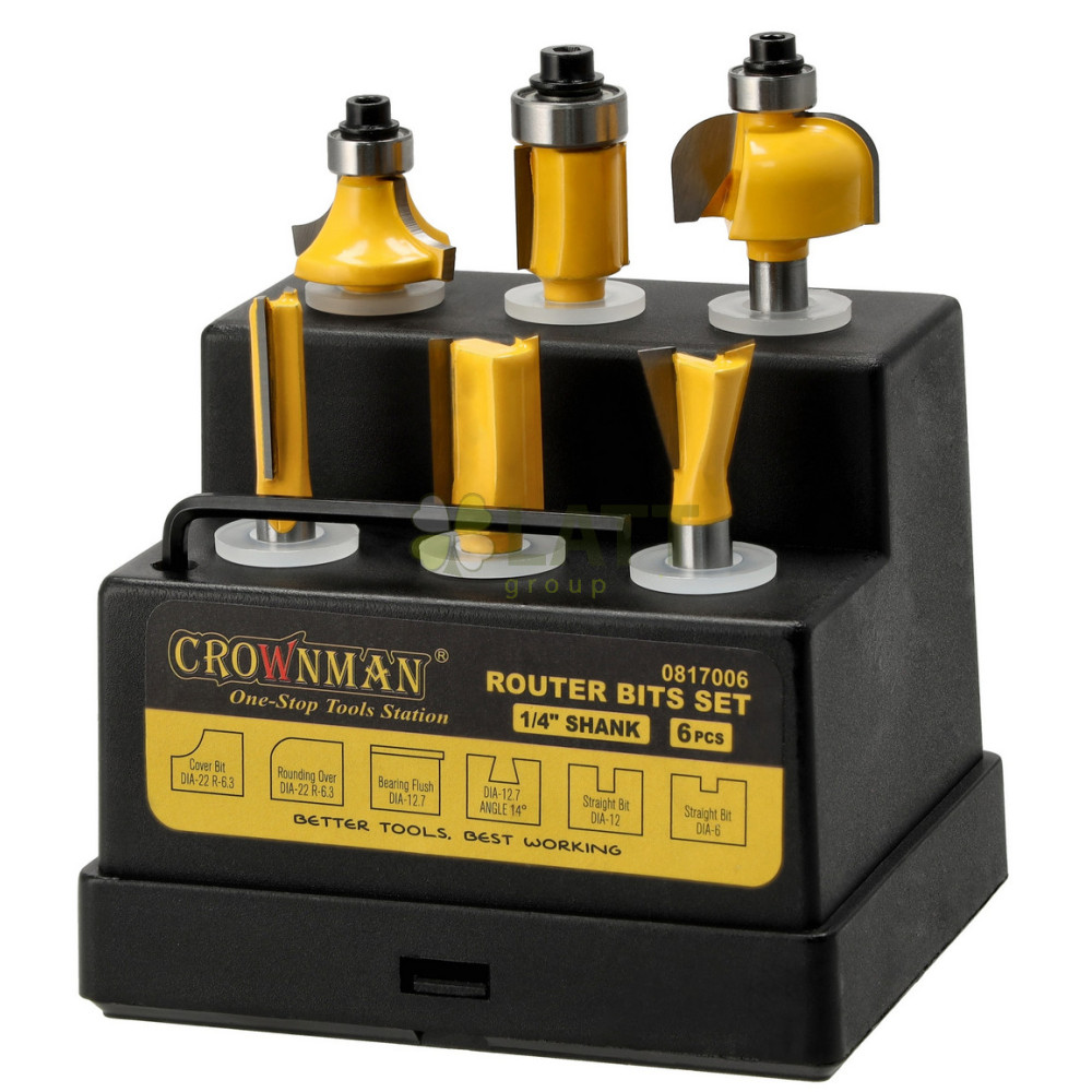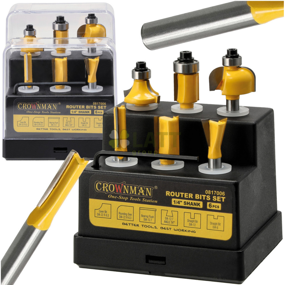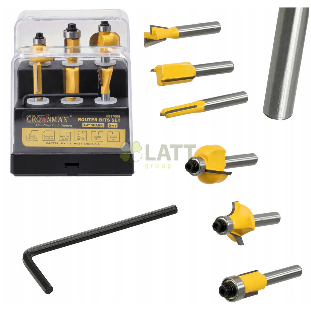 CROWNMAN Sada 6 ks rovných řezáků na dřevo 6,3 mm