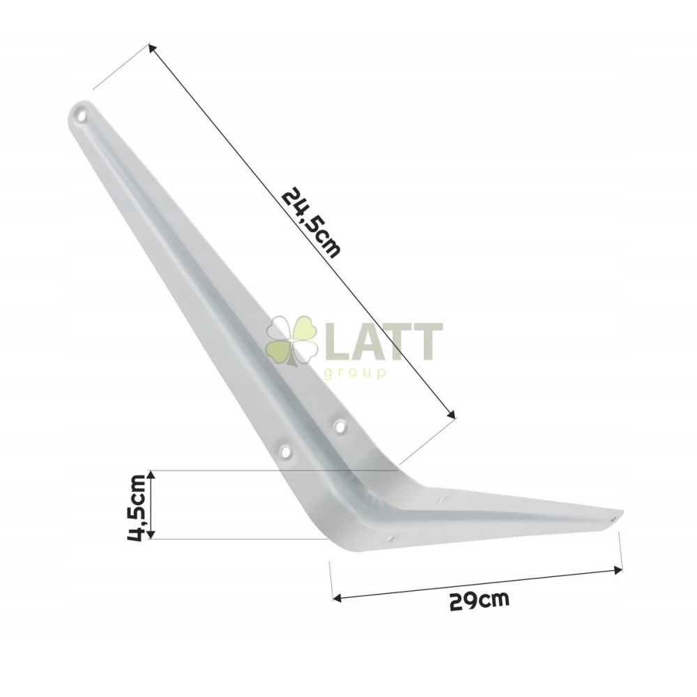 Pevnéúhlový držák pro polici 250x300 mm v bílé barvěje spolehlivé řešení pro montáž nástěnných polic, pracovních desek a regálů. Vyrobeno z oceli A3, kombinuje odolnost s estetikou – unese až25 kg, a zároveň se perfektně hodí do moderních interiérů. Hlavní vlastnosti produktu ✅ Ocel A3 – vysoká odolnost– konstrukce odolná vůči deformacím a zatížení. ✅ Nosnost až 25 kg– ideální pro police na knihy, dekorace nebo elektroniku. ✅ Bílá barva– estetický vzhled, který se hodí do každého interiéru. ✅ Kompaktní rozměry– Výška 250 mm a hloubka 300 mm zajišťují stabilitu při zachování malých rozměrů. ✅ Snadná montáž– montážní otvory umožňují rychlé a bezpečné připevnění ke zdi.