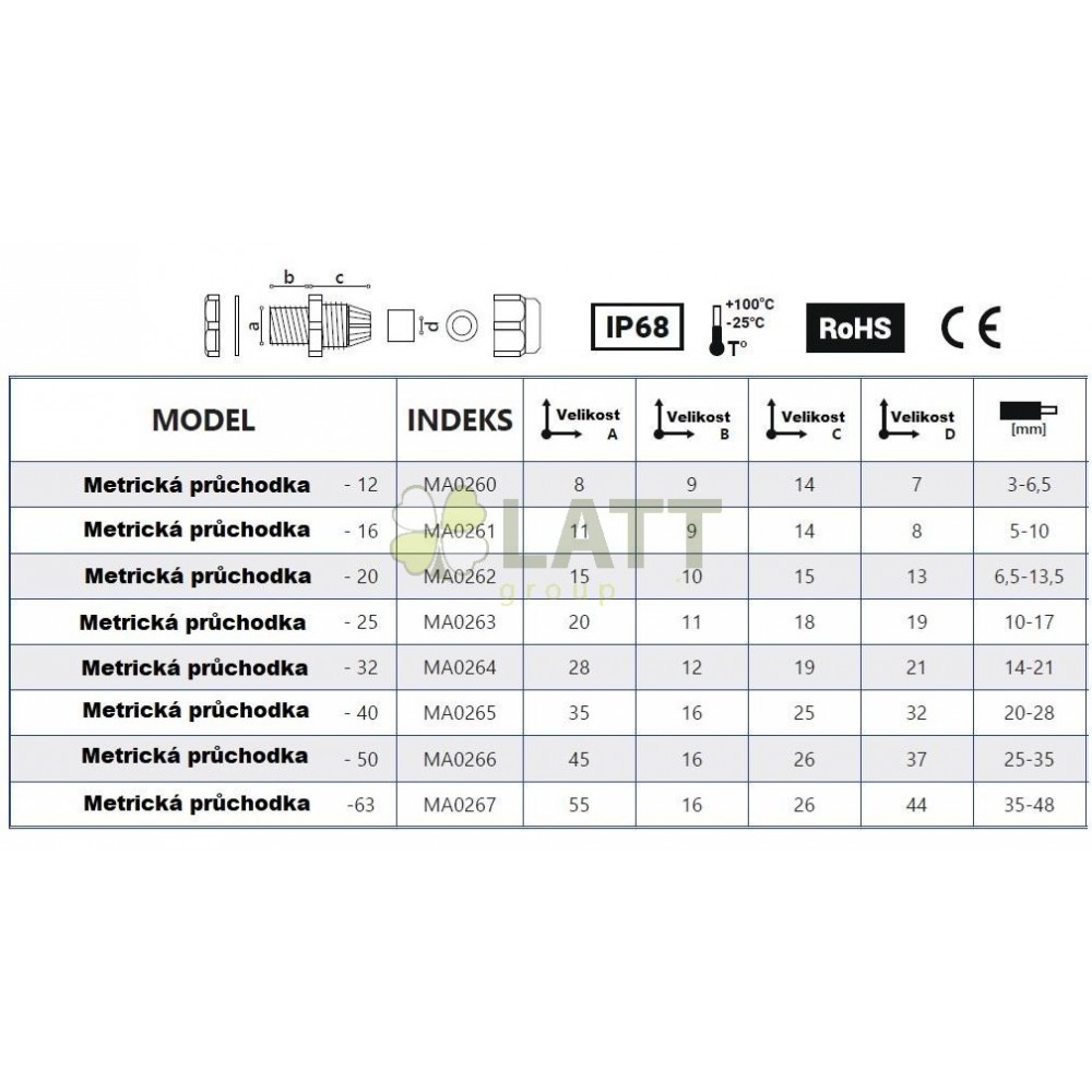 - Typ závitu: metrický