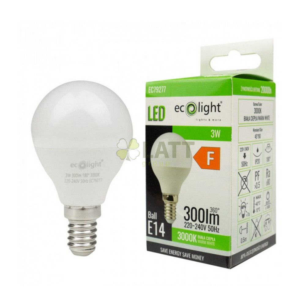 ECOLIGHT LED žárovka E14 - G45 - 3W - 270lm - teplá barva
