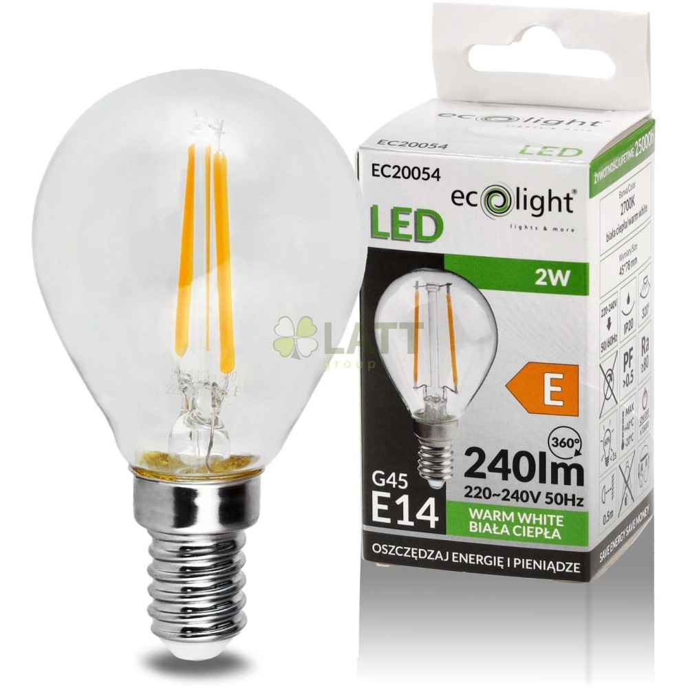 ECOLIGHT LED žárovka E14 2W teplá bílá