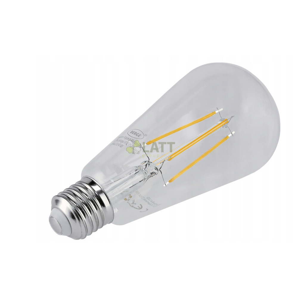 Dekorativní LED žárovka E27 ST64 s vláknem 6W s teplou barvou světla 3000K , stylizovaná v klasickém vintage tvaru – ideální pro loftové, retro a industriální lampy . Průhledné sklo a viditelná LED vlákna jí dodávají jedinečný charakter.