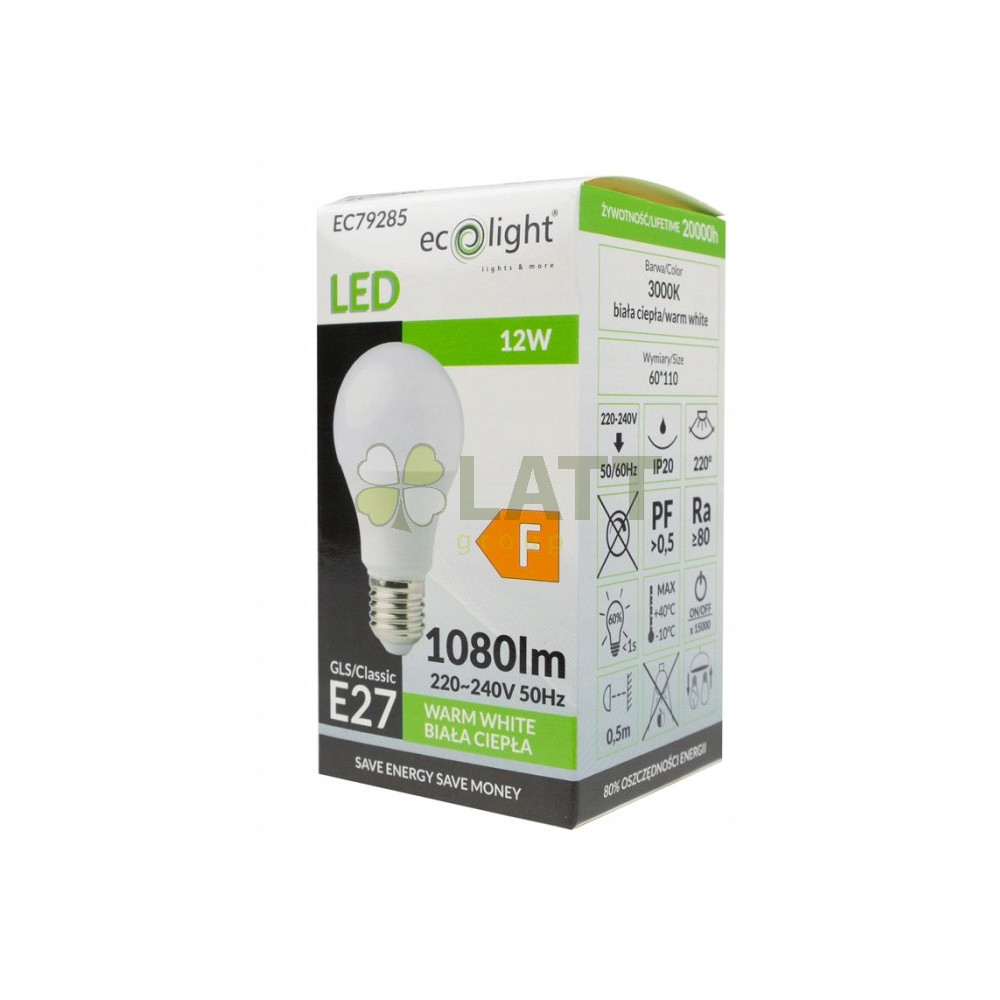 LED žárovka E27 12W 1080lm 3000K teplá bílá světla WW Eco Light