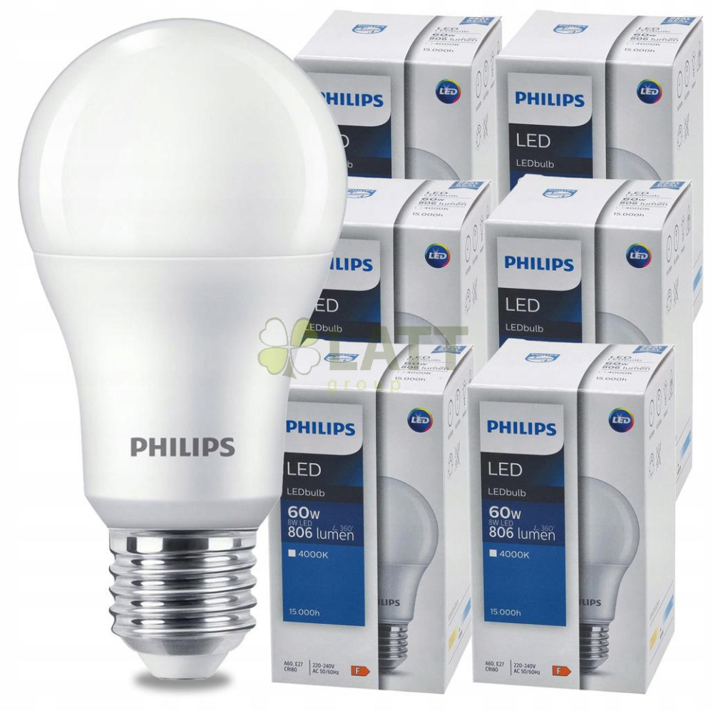 SADA 6 KS LED žárovek PHILIPS E27 8W 806lm neutrální bílá 4000K A60