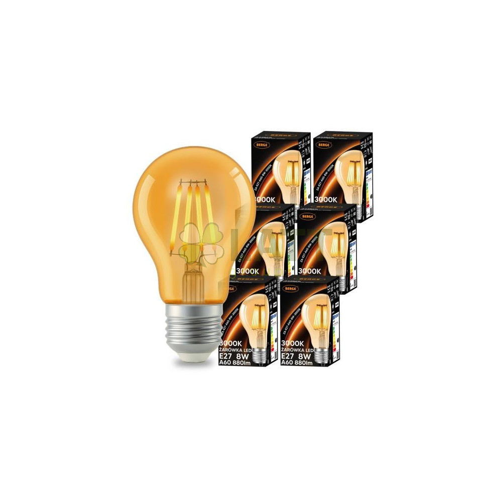 6x LED žárovka E27 a60 8W 880lm 3000k teplá jantarová sada s vláknem