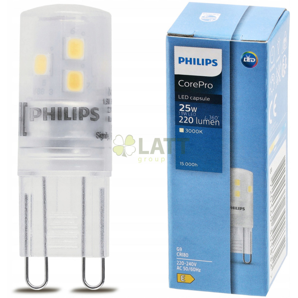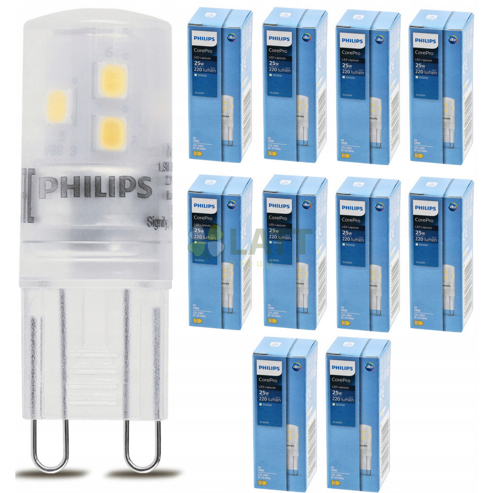 10x G9 LED žárovka PHILIPS 1,9W 25W 220lm teplá bílá 3000k sada žárovek
