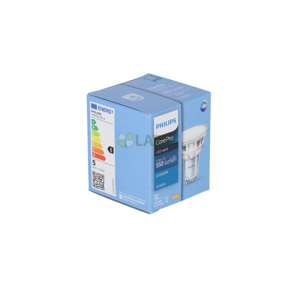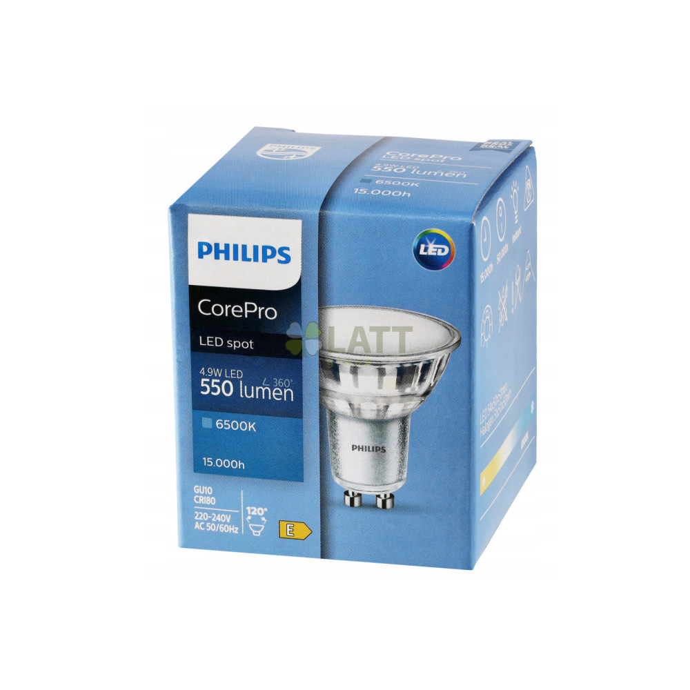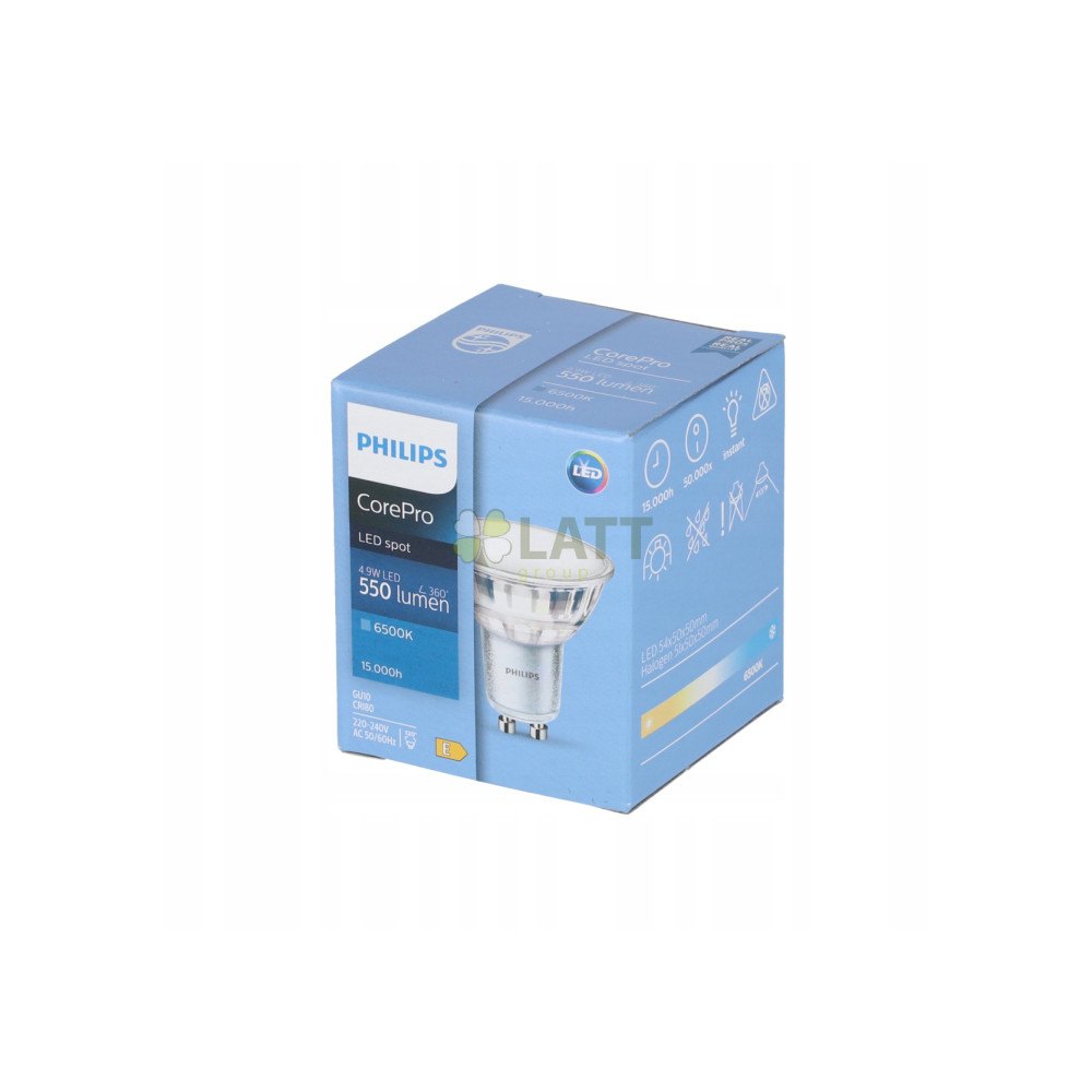 LED žárovka Philips GU10 - 4,9W - 550 Lm - studená barva 6500K CW - CorePro Premium