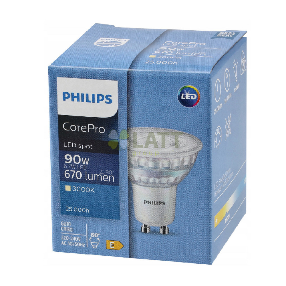 Profesionální LED žárovka PHILIPS CorePro LEDspot GU10 6,7 W je vysoce účinný, teple bílý (3000 K) světelný zdroj, který je perfektní náhradou za tradiční 100W halogenovou žárovku. Díky širokému vyzařovacímu úhlu 60° je ideální pro celkové i akcentové osvětlení a zároveň nabízí úsporu energie a životnost až 25 000 hodin.