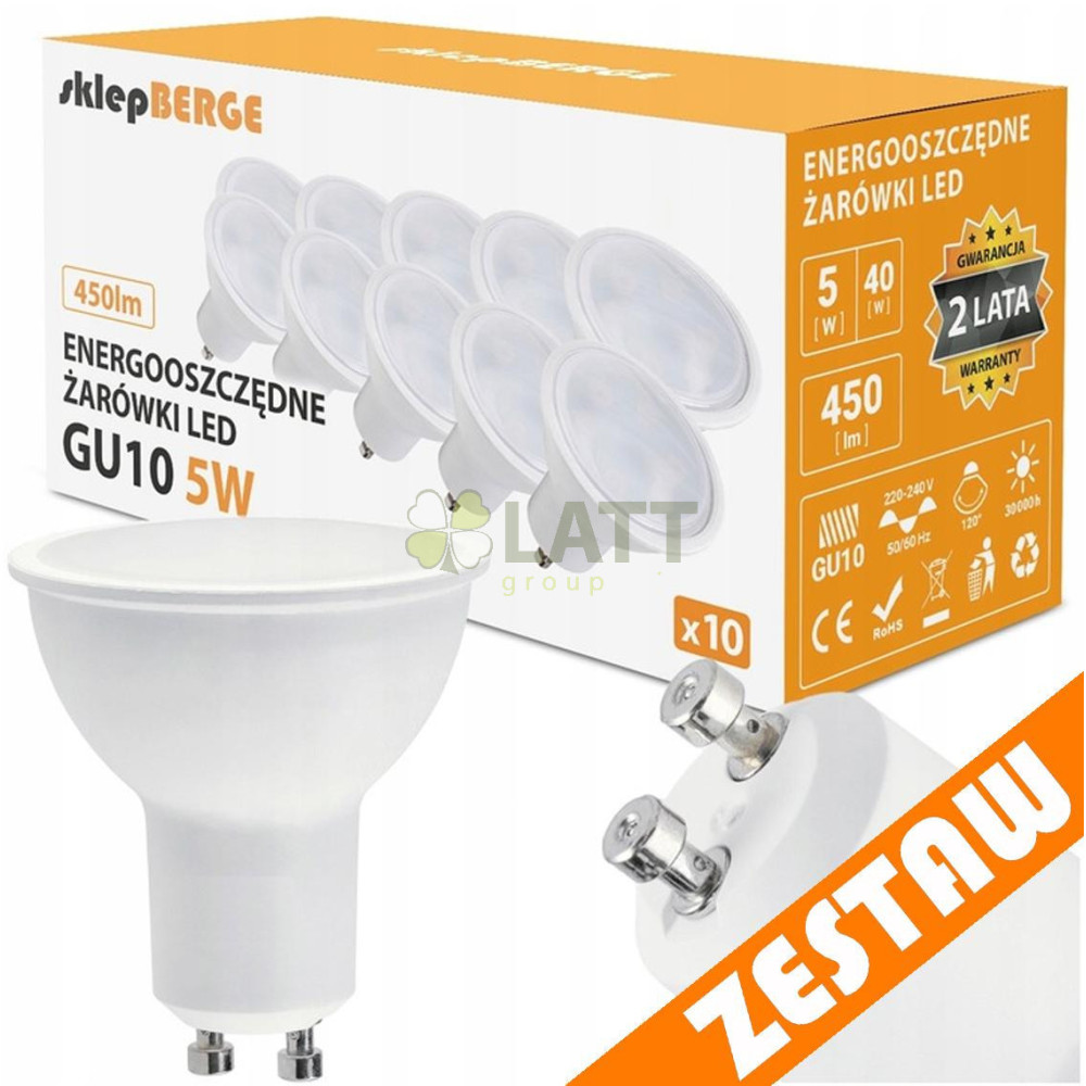 SADA 10x LED žárovek GU10 5W 450lm - neutrální bílá