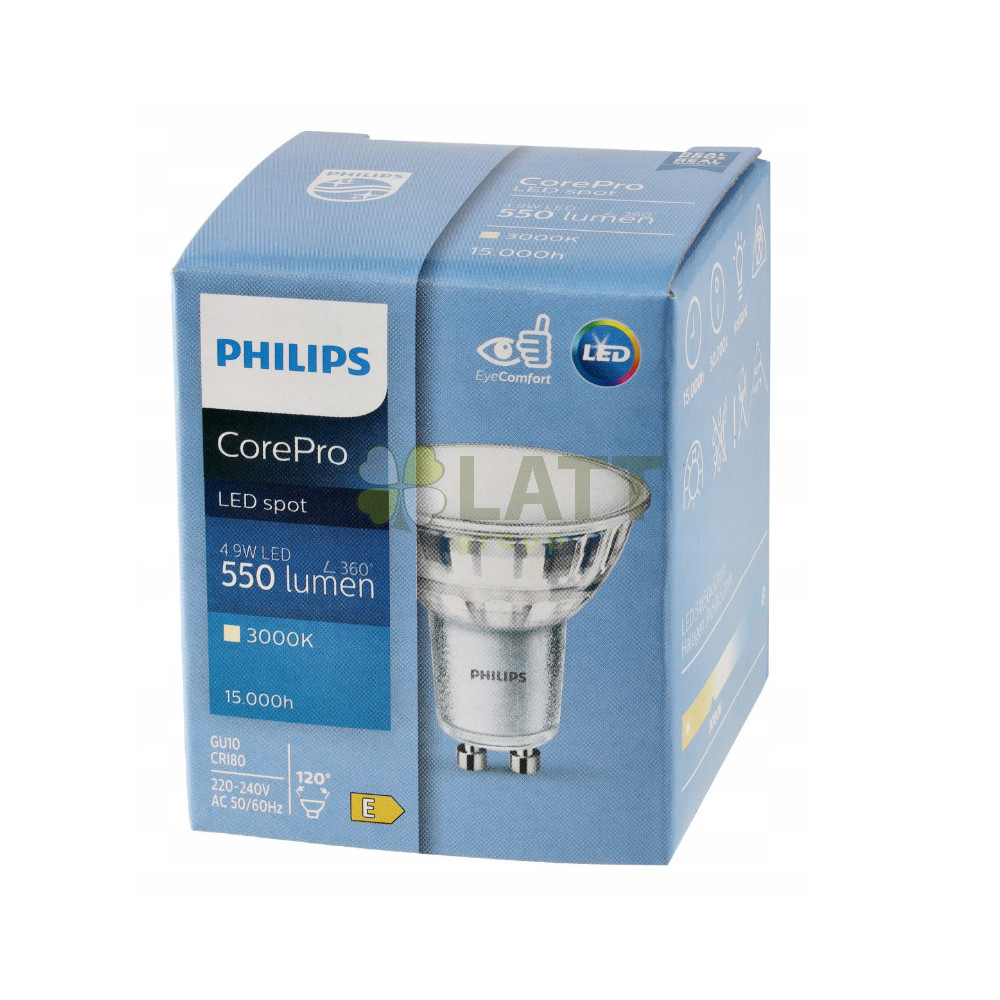 Technické parametry:LED technologieCorePro Zacházet sGU10 Světlá barva3000K (teplá bílá) Světelný tok: 550 lm Účinnost: 112 lm/W Spotřeba energie: 4,9 W Úhel paprsku: 120° Index CRI: ≥80 Trvanlivost15 000 hodin Čas zahájení<0,5 s Frekvence50–60 Hz Účiník: 0,5 Rozměry: Ø50 mm x 54 mm Váhy45 g ZatemněníNE Energetická třídaE Shoda s RoHSAno Spotřeba energie: 5 kWh/1000h ✨Sada 5 kusů! |