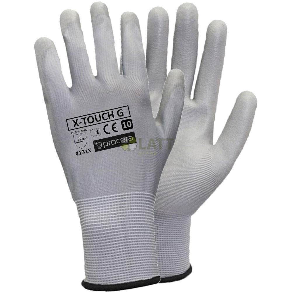 Rukavice X-TOUCH GREY vyrobené z polyesteru, potažené v úchopové části polyuretanem. Ideální pro manuální práci. Velmi dobrý pocit z drženého objektu. Dobře se přizpůsobí tvaru ruky. Pružné a elastické. Ukončeno lemem. CE EN 388. Balení: karton 12/240. Šedá barva.