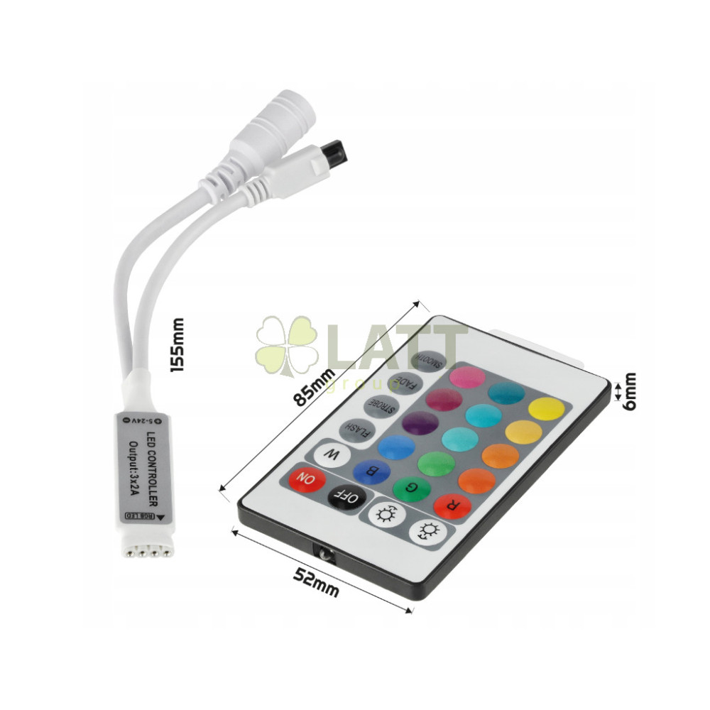 ⚙️ Dane techniczneTyp: sterownik / kontroler LED RGB Sterowanie: pilot IR (podczerwień) Napięcie zasilania: DC 5–12V Maksymalny prąd wyjściowy: 6A Maksymalna moc: 72W Obsługiwane źródła światła: taśmy LED RGB (3-kanałowe) Funkcje: zmiana kolorów, ściemnianie, efekty dynamiczne Rozmiar gniazda zasilania: DC 5.5 / 2.1 mm Bateria do pilota: W zestawie Certyfikaty: CE, RoHS |