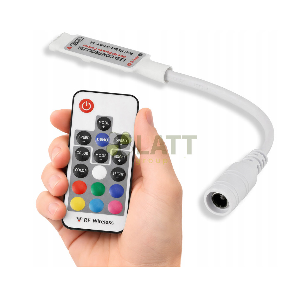 ⭐️ Super cena ⭐️Sterownik LED RGB RF17 to nowoczesny kontroler z pilotem radiowym, przeznaczony do taśm LED RGB zasilanych napięciem DC 5–24V. Umożliwia wygodne sterowanie kolorami, jasnością oraz efektami świetlnymi bez konieczności kierowania pilota w stronę odbiornika. ✔️ Główne cechy produktu✅ Sterownik do taśm LED RGB Przeznaczony do taśm LED RGB (3-kanałowych) – pełna kontrola kolorów i efektów świetlnych. ✅ Sterowanie radiowe RF Pilot działa na falach radiowych – zasięg do 20 metrów, również przez przeszkody (ściany, meble). ✅ Szeroki zakres napięcia 5–24V DC Jeden sterownik do wielu instalacji – kompatybilny z taśmami LED RGB 5V, 12V oraz 24V. ✅ Wysoka wydajność – 6A Obsługuje obciążenie: