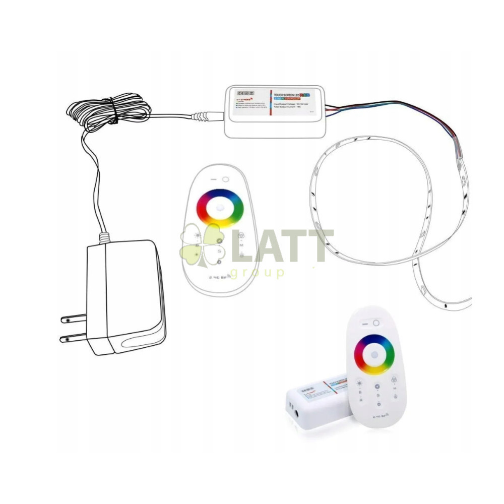Dálkové ovládání pro RGB LED pásky s dotykovým ovládáním, více funkcí pro LED pásky, max. 216 W