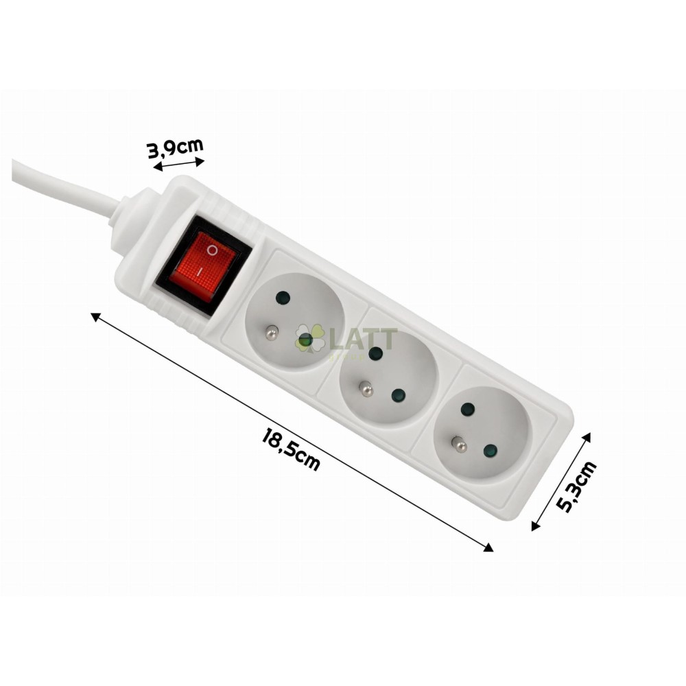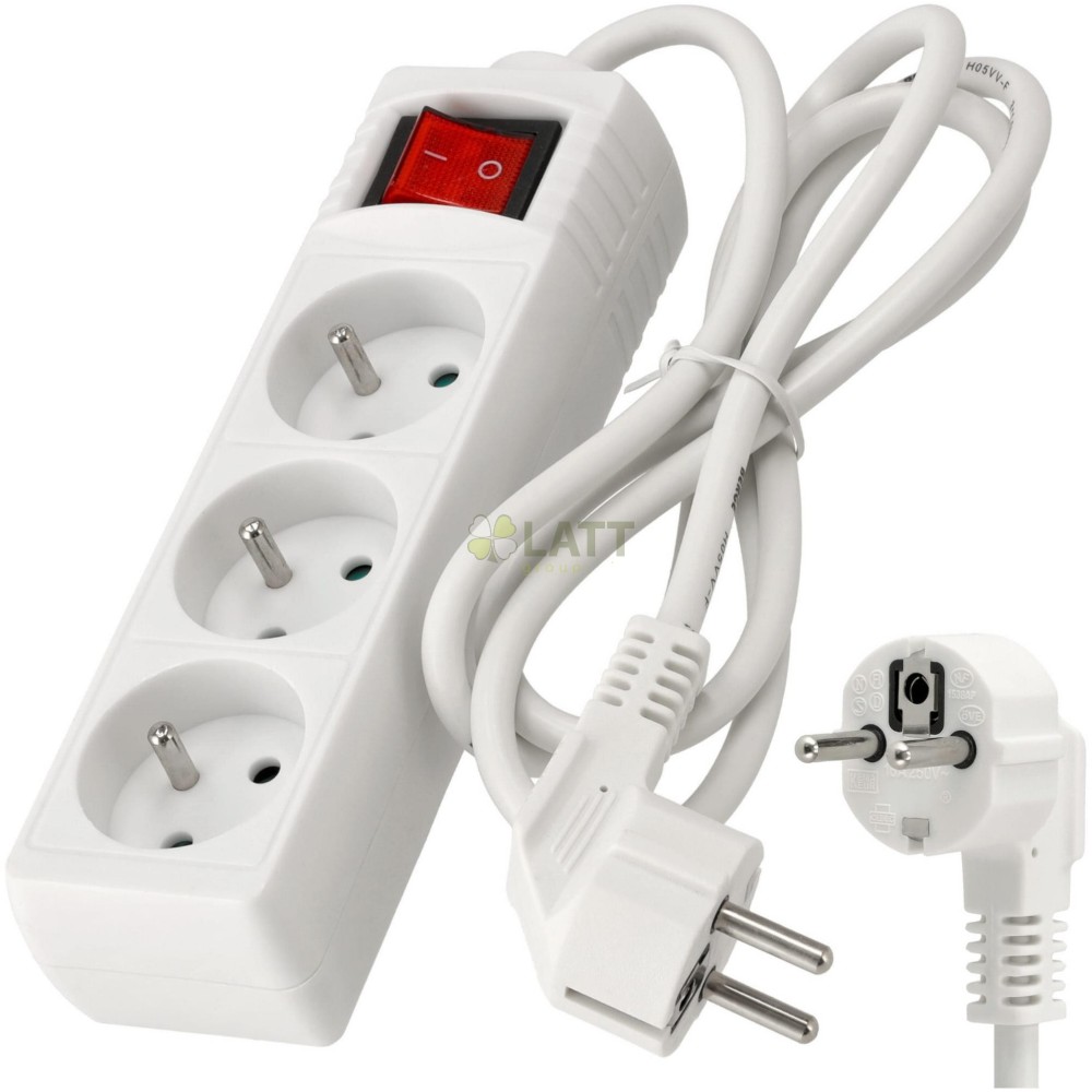 3 zásuvky: Díky 3 zásuvkám můžete připojit několik zařízení současně, díky čemuž je naše prodlužovací šňůra nenahraditelná doma, v kanceláři nebo v dílně.