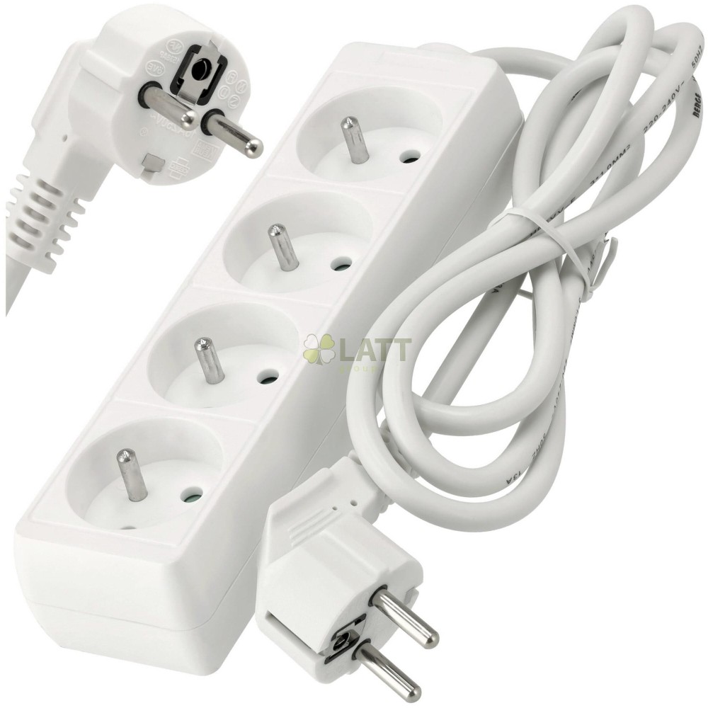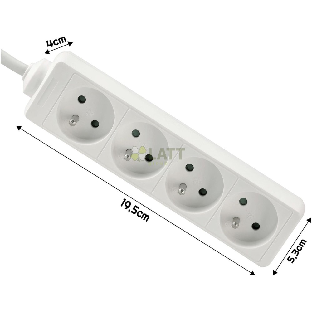 4 zásuvky: Díky 4 zásuvkám můžete připojit několik zařízení současně, díky čemuž je naše prodlužovací šňůra nenahraditelná doma, v kanceláři nebo v dílně.