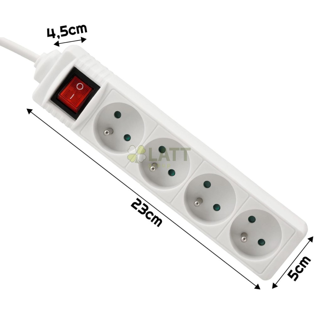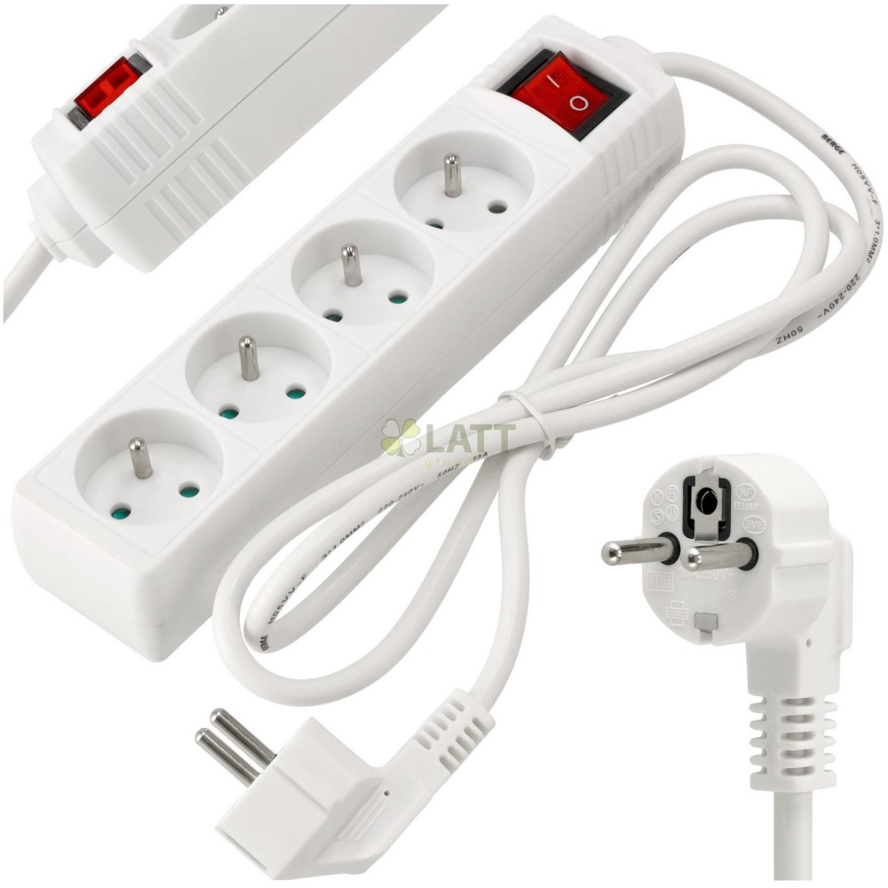 4 zásuvky: Díky 4 zásuvkám můžete připojit několik zařízení současně, díky čemuž je naše prodlužovací šňůra nenahraditelná doma, v kanceláři nebo v dílně.