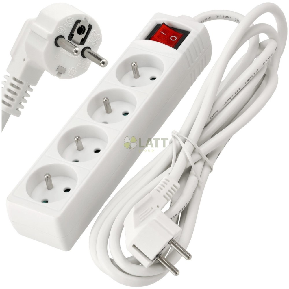 4 zásuvky: Díky 4 zásuvkám můžete připojit několik zařízení současně, díky čemuž je naše prodlužovací šňůra nenahraditelná doma, v kanceláři nebo v dílně.