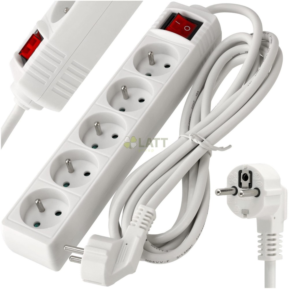 5 zásuvek: Díky 5 zásuvkám můžete připojit několik zařízení současně, díky čemuž je naše prodlužovací šňůra nenahraditelná doma, v kanceláři nebo v dílně.