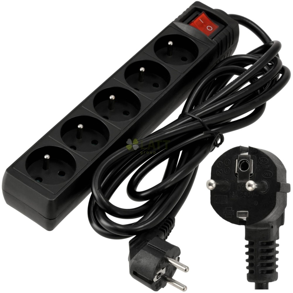 5 zásuvek: Díky 5 zásuvkám můžete připojit několik zařízení současně, díky čemuž je naše prodlužovací šňůra nenahraditelná doma, v kanceláři nebo v dílně.